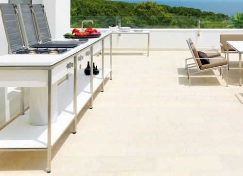 The collection includes the outdoor kitchen concept and coordinating outdoor tables.